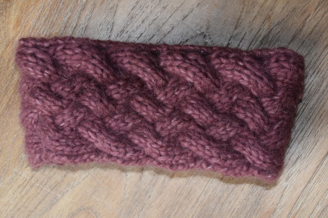 Bandeau triple torsades en alpaga/coton/laine, vieux rose