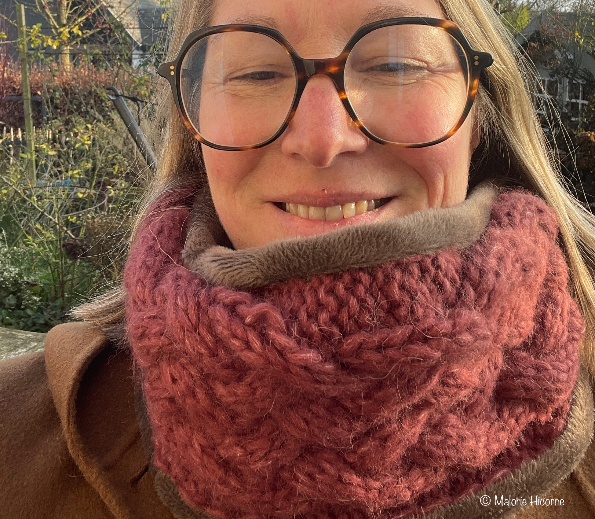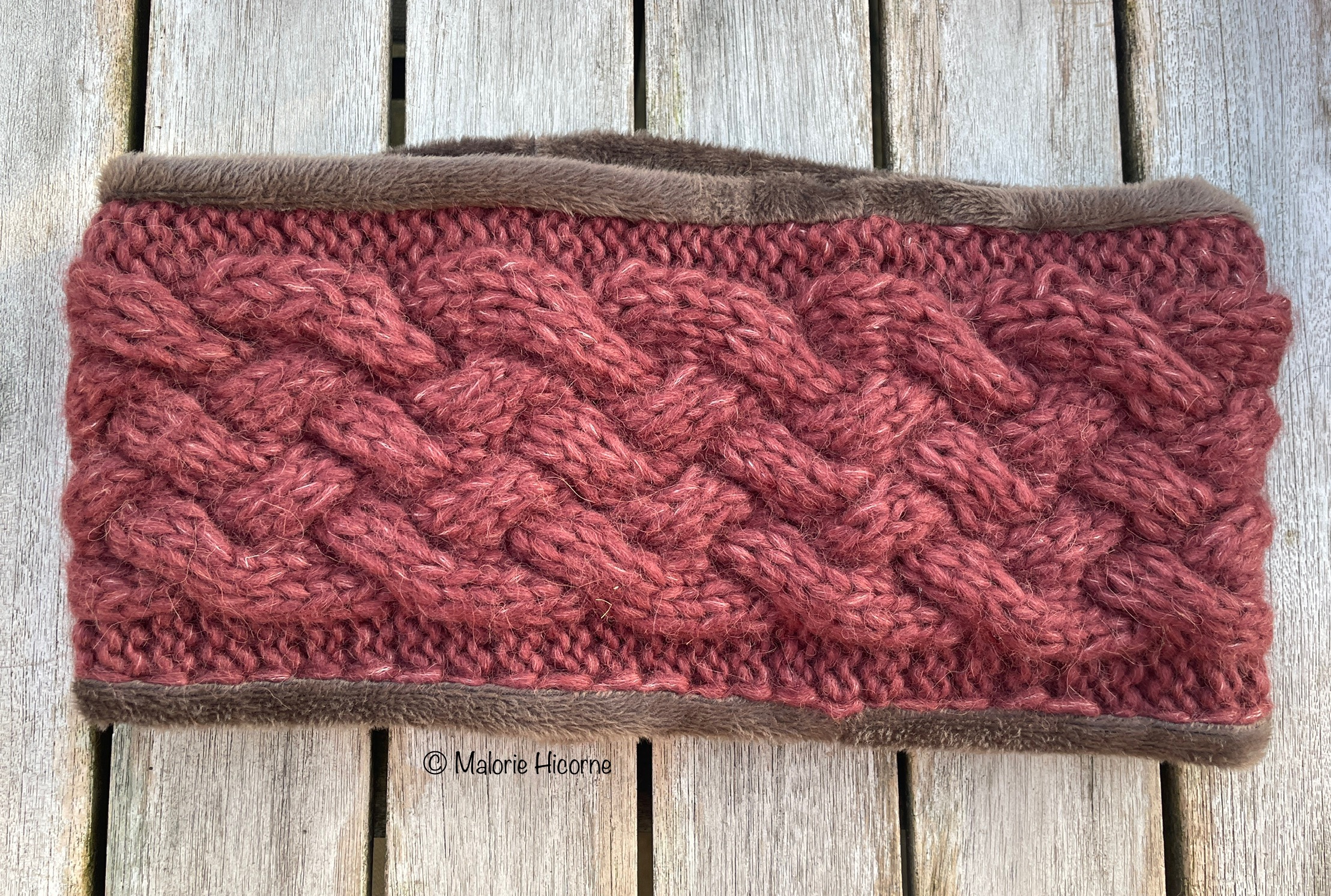 Snood triple torsades, doublé d’un épais doudou marron, tout doux, tout doux.