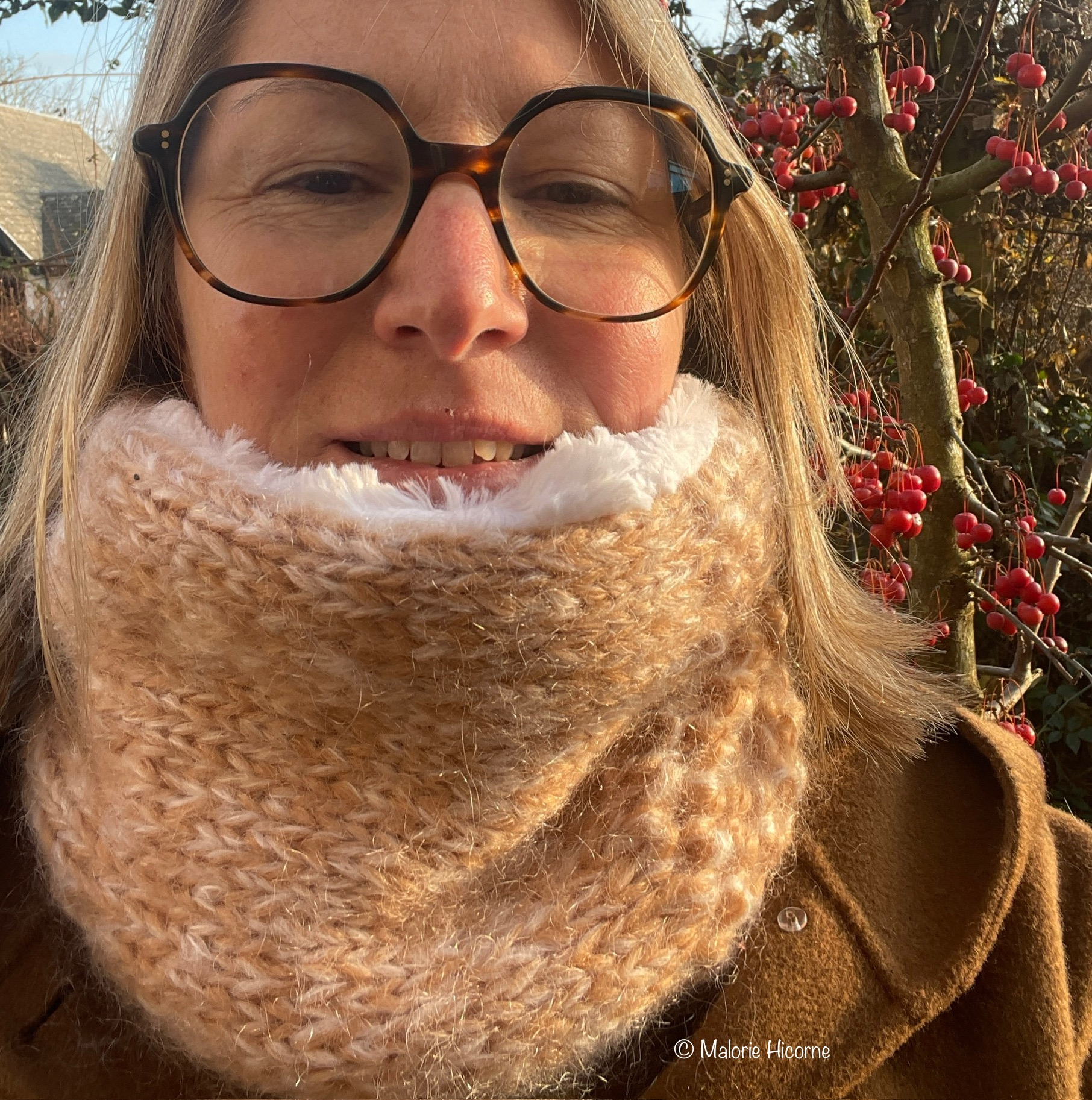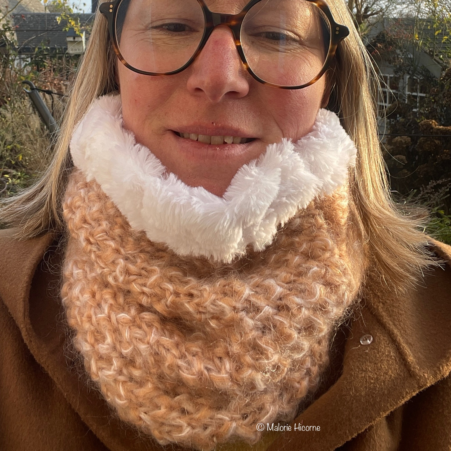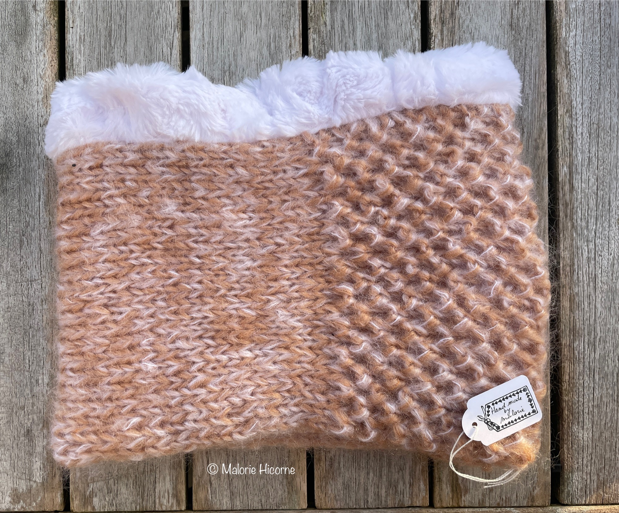 Snood en mohair sable, mi jersey, mi texturé, avec une doublure en fausse fourrure blanche, extra douce!